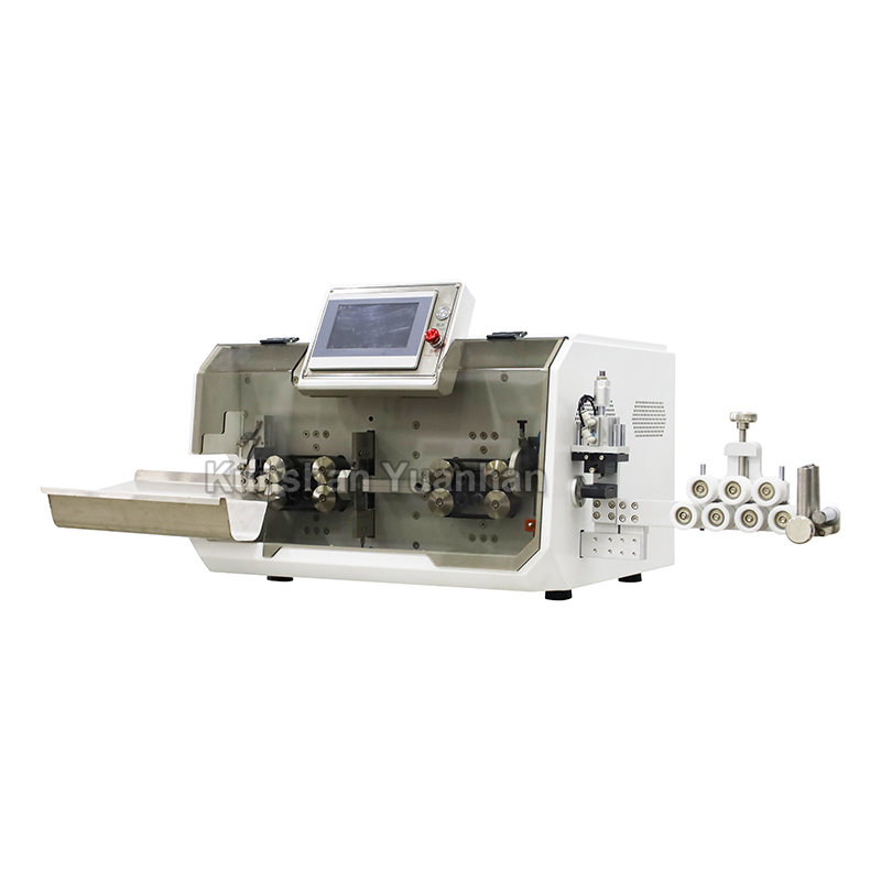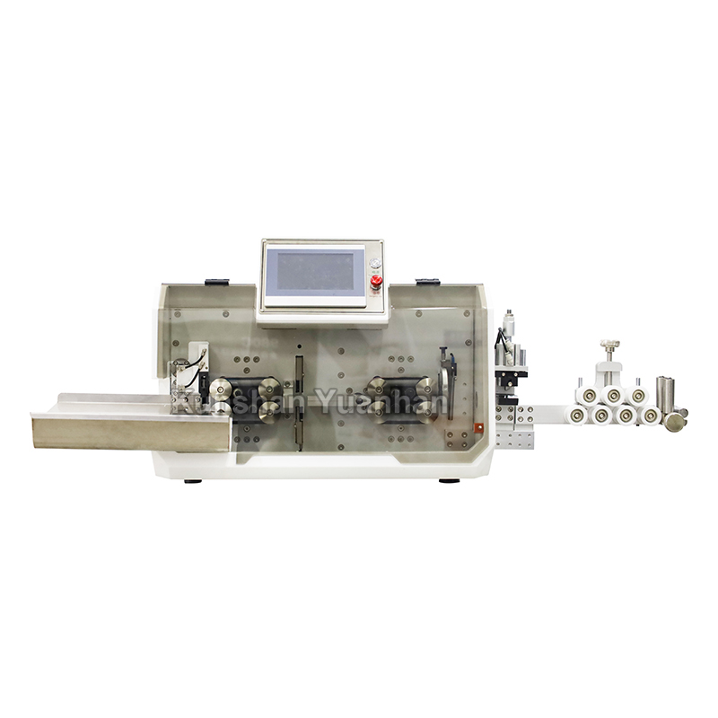 型号 YH-BXFX05 显示 7英寸人机界面 功能 电缆切断,外护套和导体剥离 电线类型 单芯线,多芯电缆,护套电缆,PVC电缆等 加工范围 0.75 - 30 mm (≤ 10 芯) 切割长度 1mm-999999.99mm 切割公差 在0.002*内 (L=切割长度) 剥线长度 头部剥线: 外护套: 10-200mm, 内导体:150mm 尾部剥线: 外护套: 10-80mm, 内导体:1-50mm 电线导引管直径 Φ18 工具材料 高速钢 生产率 3500 件/小时